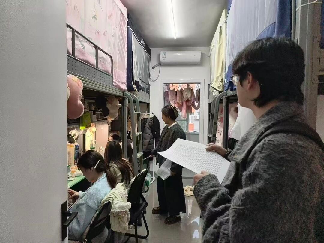 张爱军书记就本次查寝工作提出明确要求。他强调,全体参与人员要坚持文明巡查、规范检查,进入宿舍前主动敲门,注重礼仪规范;同时要对首轮查寝中发现的重点寝室加大排查力度,做到重点关注、重点整改,确保查寝工作落地见效。检查现场,老师们仔细查看宿舍卫生与物品摆放情况,引导同学们养成良好生活习惯;与同学们亲切交谈,耐心询问学习生活困难与需求,细致讲解宿舍管理细则,着重强调消防安全、用电安全等关键事项,在细致交流中传递学院关怀。