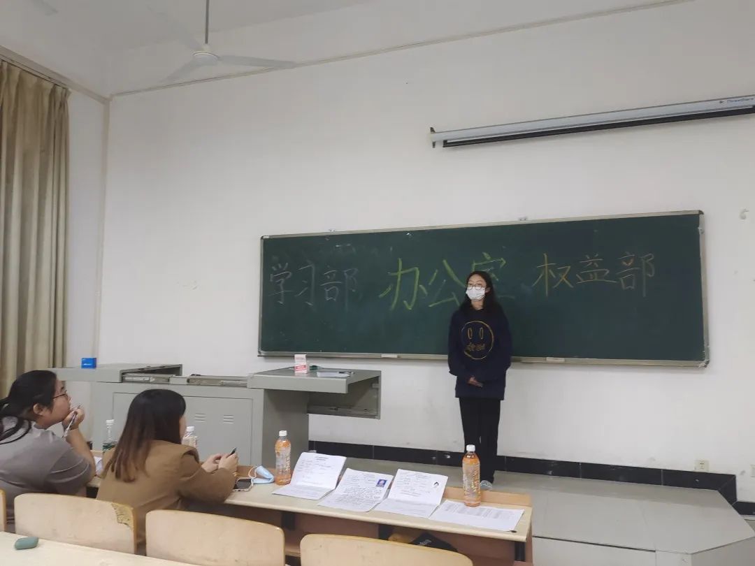 同学们分期分批进入面试教室,进行自我介绍、个人优势说明和部长针对性的问题进行思考并回答。
