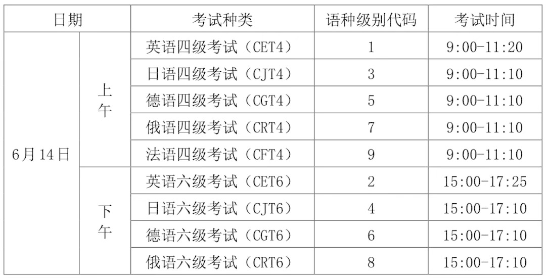 报考日语、德语、俄语六级的考生,对其相应语种四级成绩不做要求。
