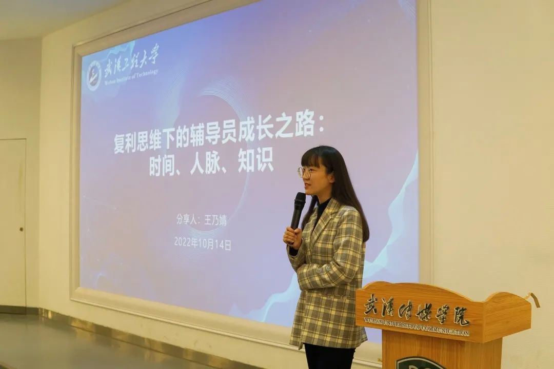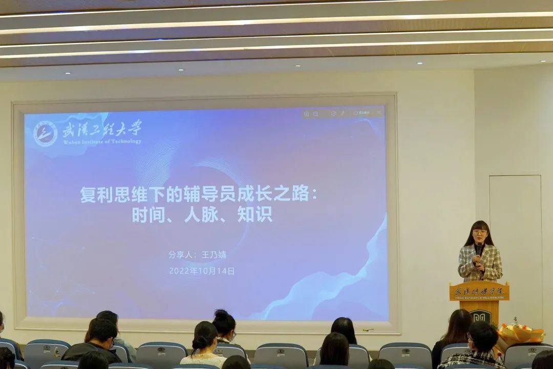 为加强辅导员之间沟通交流,提升工作能力和水平,利用好这个平台,深度沟通交流,在互学互鉴中增进育人意识、提高育人本领,共同打造有爱有温度的辅导员团队。我院于2022 年 10 月 14 日下午14:00,在3101教室展开了第三期辅导员沙龙之《复利思维下的辅导员成长之路:时间、人脉、知识》辅导员职业生涯主题研讨会。此次沙龙邀请了武汉工程大学党委学工部办公室主任王乃婧老师作分享。学工处及各院系辅导员参加了本次沙龙活动。