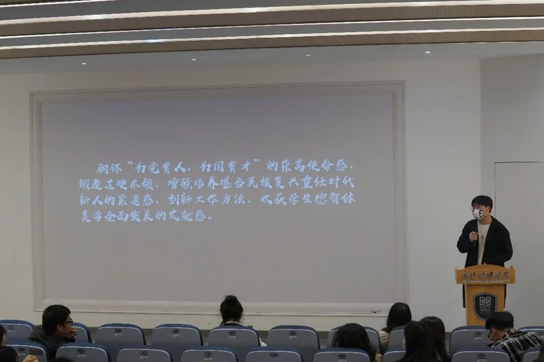 最后,王老师对《高等学校辅导员职业能力标准(暂行)》九大职业功能作了详细的阐述,使各辅导员对自我身份与“教师”角色有了更明确的理解和更清晰的认知。