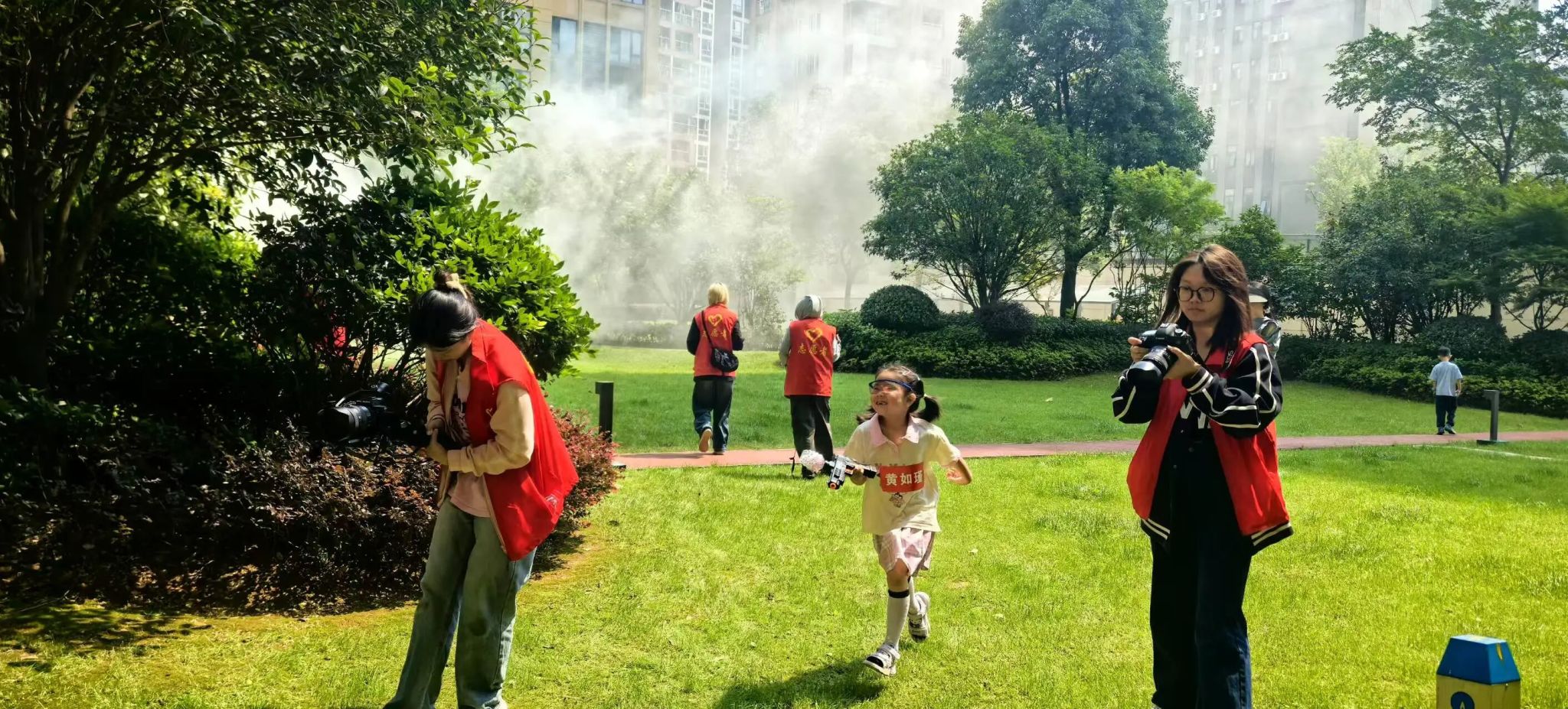 针对暑期社区儿童活动需求,团队还全程参与了“强苗计划”儿童军事化演练。从队列训练到真人CS体验,同学们用多角度拍摄展现孩子们的飒爽英姿,制作的宣传短片同步发布在社区及江夏区退役军人事务局视频号,获得广泛关注。“看着孩子们在镜头里认真的样子,就像看到了爱国种子在发芽。”志愿者王姿淇同学说。