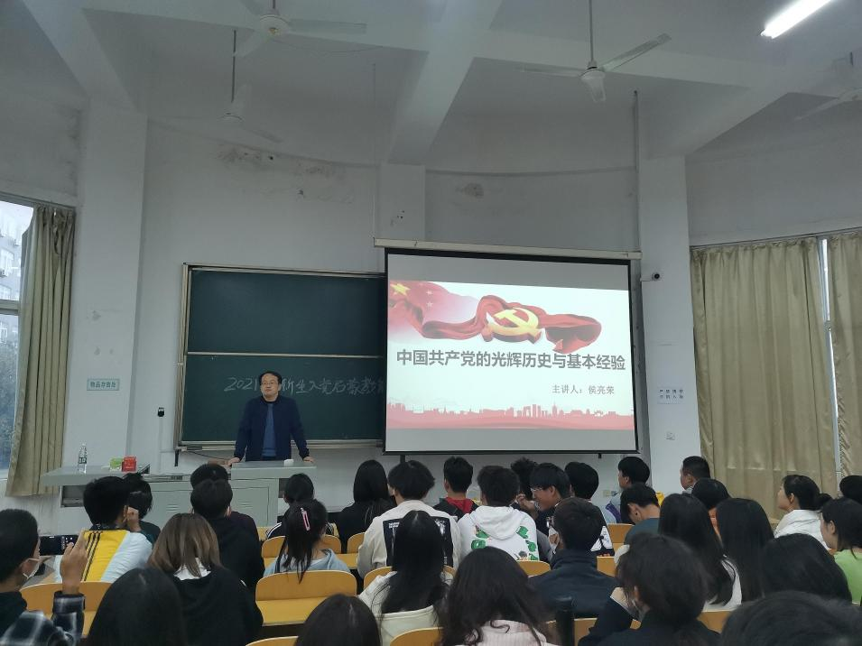 (图 寇微|文 饶心茹)为鼓励新生积极向党组织靠拢,引导新生端正入党动机。2021年10月18日,77779193永利官网集团党总支部书记侯亮荣同志在3201教室以“中国共产党的光辉历史与基本经验”为主题,为同学们展开了一场入党启蒙教育。