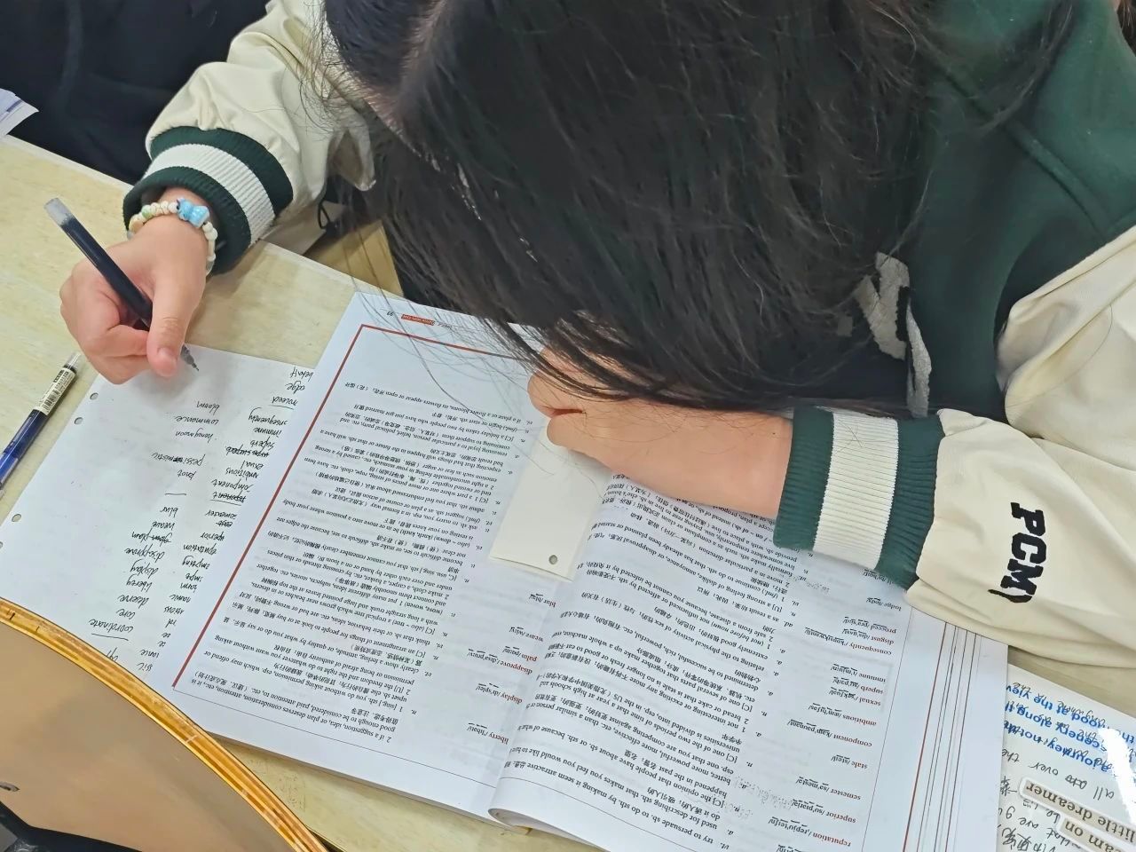 在每天的自习活动中,教室里只有翻书声和笔尖的沙沙声,同学们都在默默背单词或做模拟试题,在没有老师巡视的情况下,同学们也能约束好自己,全身心的投入到外语学习中。