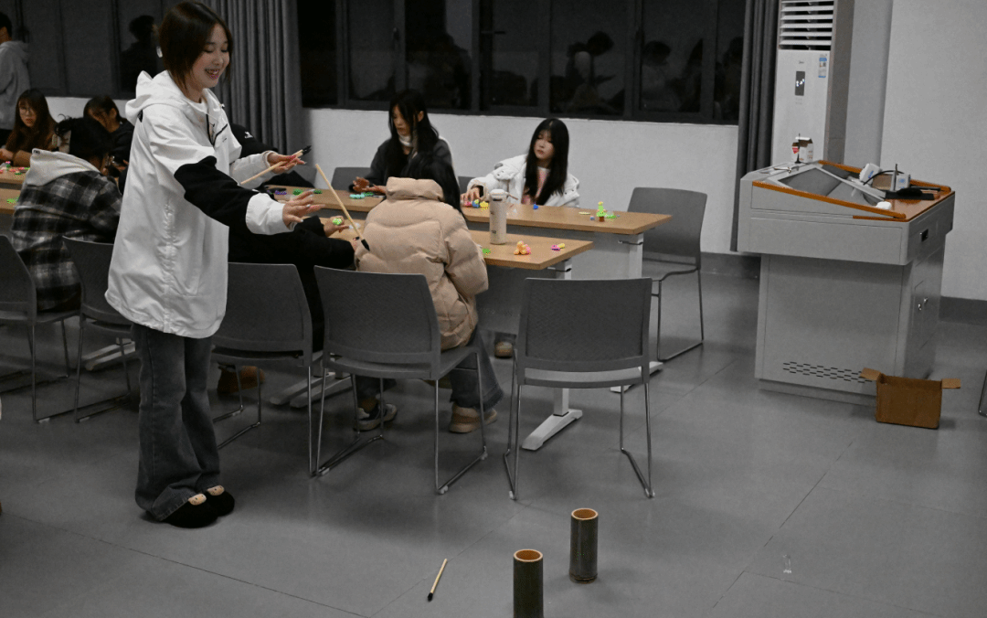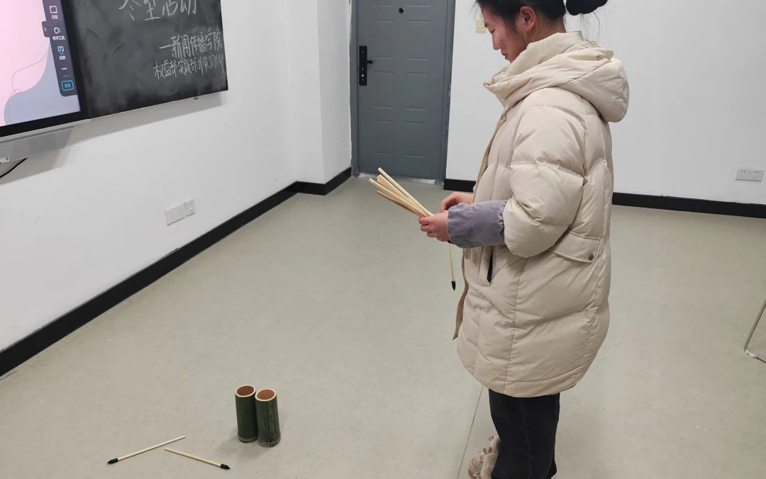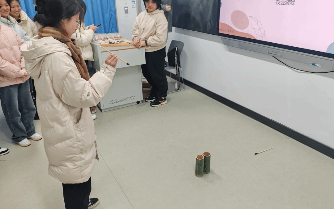 投壶小游戏也吸引了众多同学的注意,同学们踊跃参与。