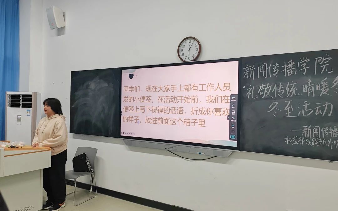 同学们在便签上纷纷写下祝福语,表达对他人的暖心祝福。随后,工作人员讲解了冬至的历史渊源和文化内涵,也分享了不同地区冬至的风俗习惯,让同学们对这一传统节日有了更全面的认识。