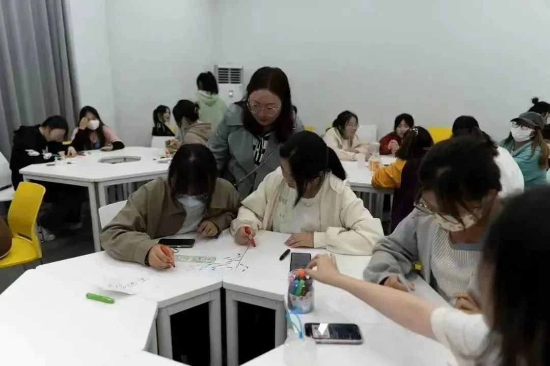 在团学干部的组织下,同学们分为八个小组,以小组的形式来参加这次活动,最后每个小组派一个人出来讲解这幅画并给大家讲一个关于这幅画的一个消防知识。此次作画的主题为随机抽取,有室内着火、实外着火、灶台着火、线路着火、宿舍用电以及火场逃生。同学们开始了小组讨论,踊跃表述自己的想法。同学们在画纸上先构图,然后再通过场景的需要选择颜色,最后一起完成了那副消防涂鸦。