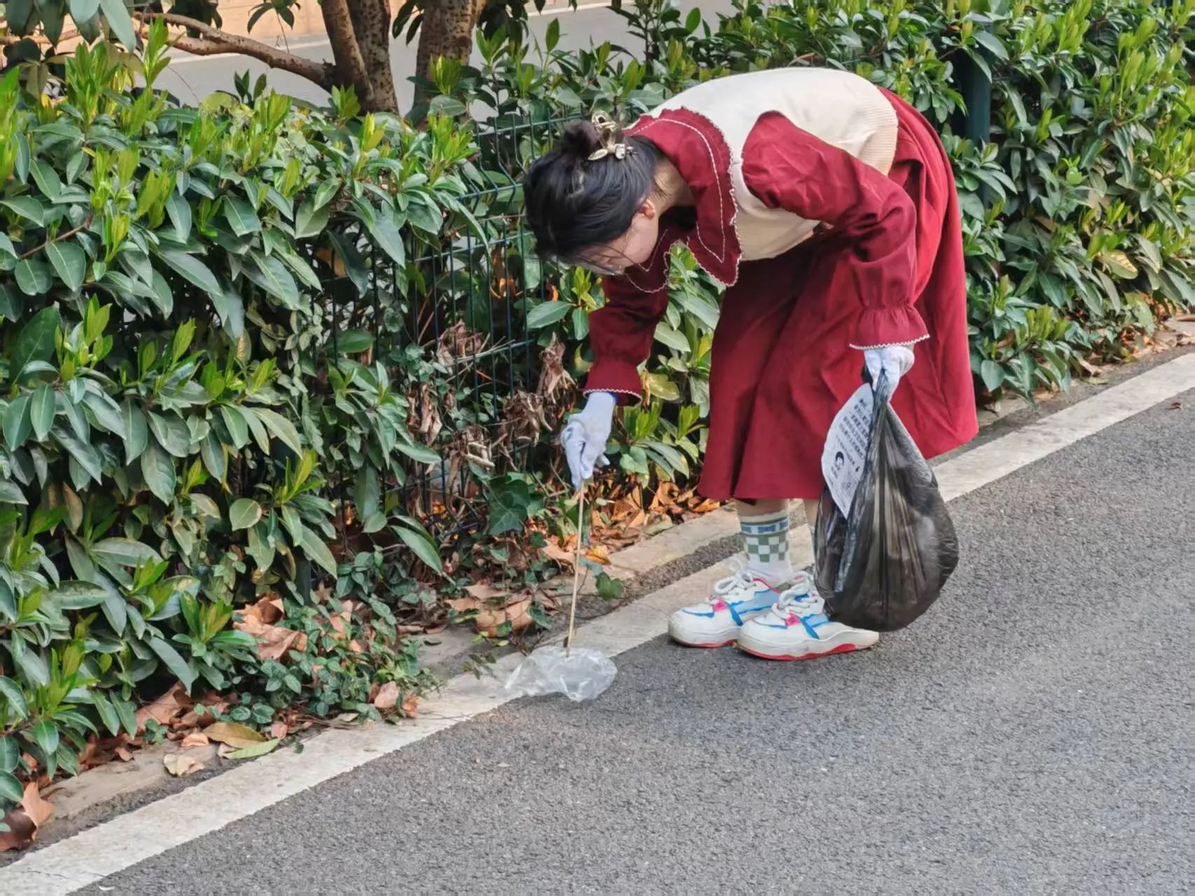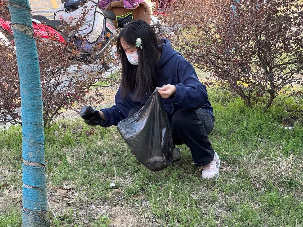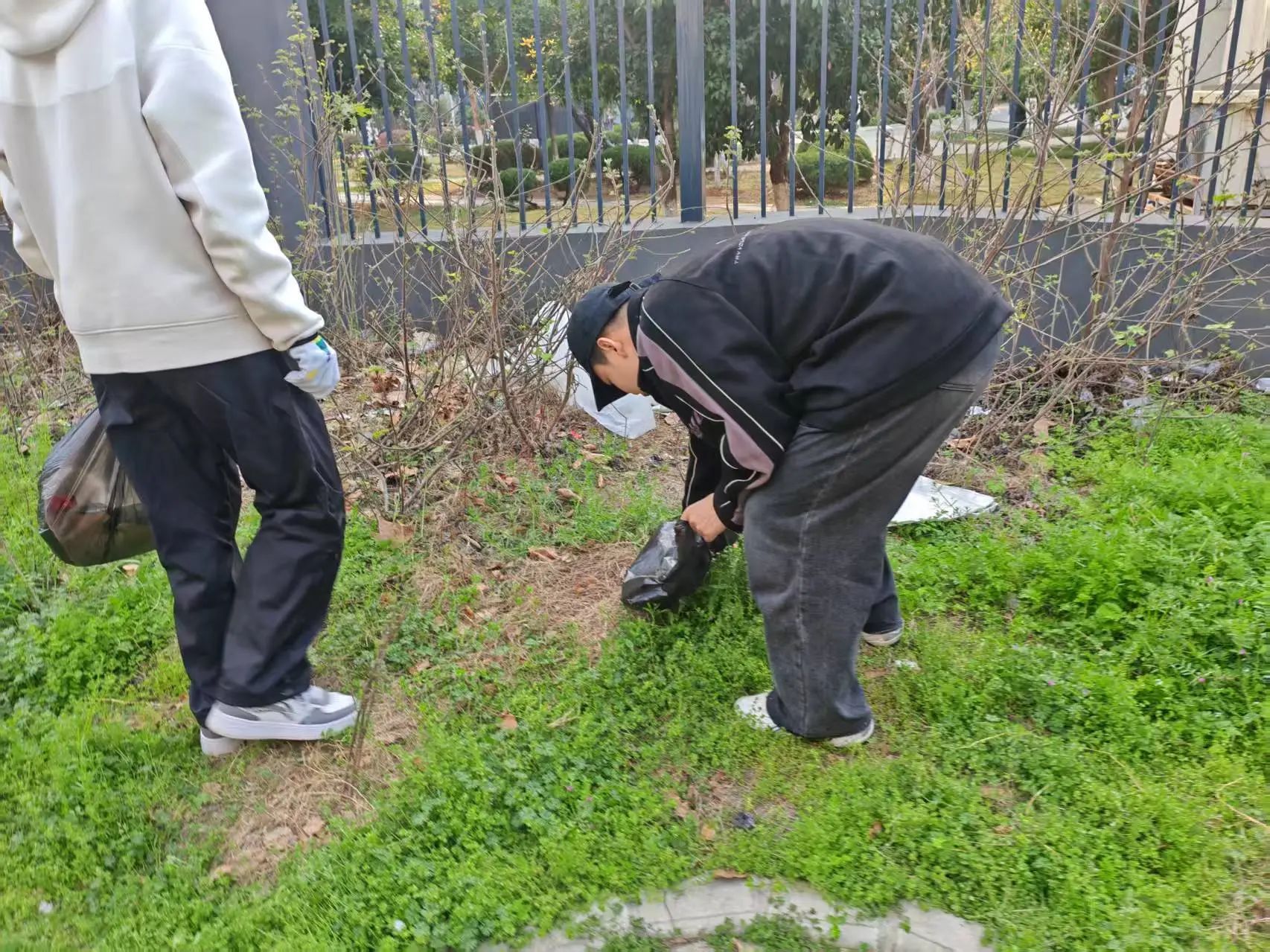 在清洁实践环节,同学们领取垃圾袋、手套、垃圾夹等工具后,按照分组前往指定区域开展垃圾清理。大家分工协作,认真清理校园道路、草坪、教学楼周边的垃圾,特别是一些容易被忽视的卫生死角。在这个过程中,同学们不仅锻炼了团队协作能力,也用实际行动践行了雷锋精神,让“奉献、友爱、互助、进步”的志愿服务精神更加深入人心。