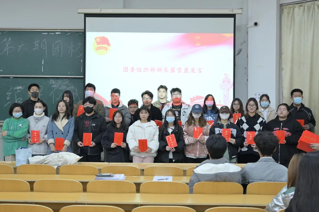“我们身在红旗下,长在春风里,目光所至皆为中华,五星闪耀皆为信仰。”本期团校结业典礼在国歌声中拉开序幕。礼毕后,由院团委组织部部长翟雪盈汇报了第六期团校情况,并宣读结业学员名单和优秀学员名单,团委副书记李倩九月致辞,秦晶晶老师和罗怡然老师为学员颁发证书。