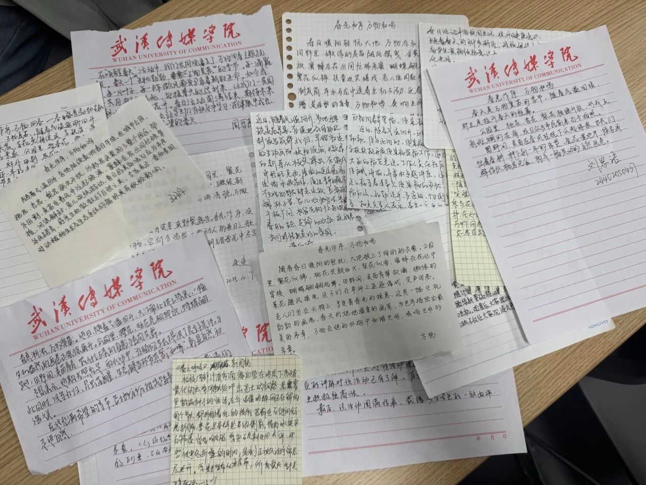 在“闻香识春”环节,同学们欣赏了春日生态视频《春光作序,万物和鸣》,并即兴撰写150字左右的新闻稿。同学们用细腻的笔触描绘春日光景,分享对自然的感悟。稿件收集后,部分优秀作品在现场进行了朗读展示,赢得了阵阵掌声。