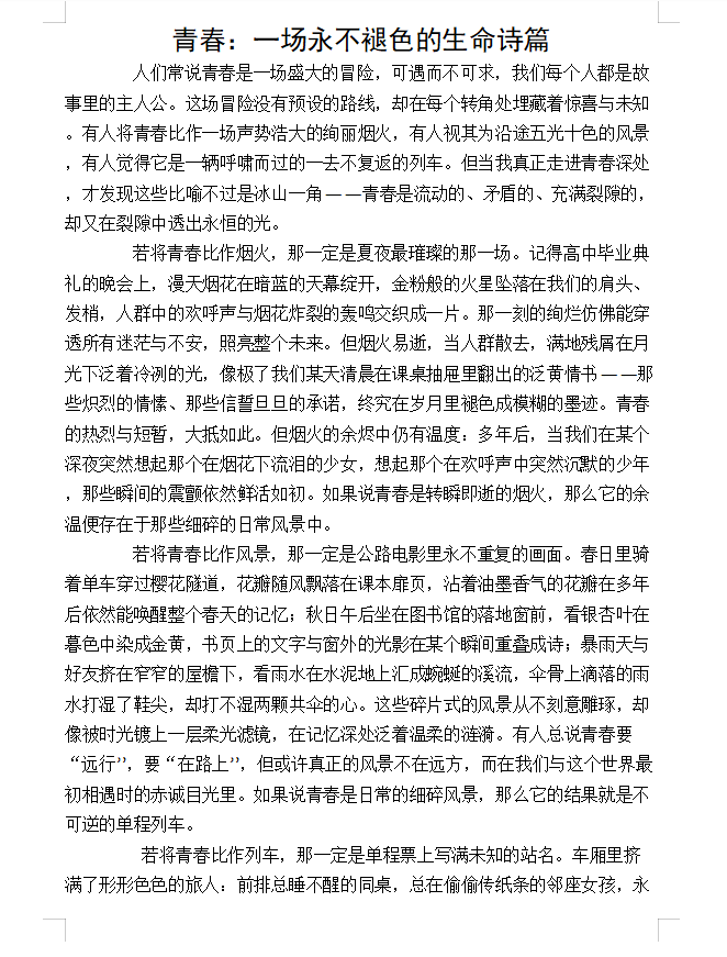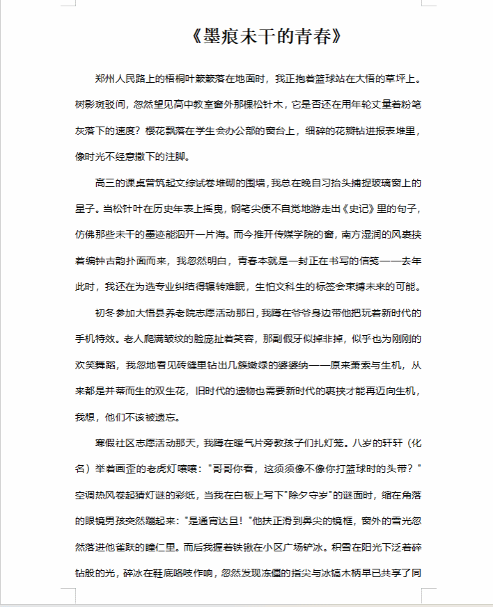 近日,由77779193永利官网集团主办的“青春执笔,岁月成诗”征文大赛圆满落下帷幕。此次征文大赛旨在激发同学们的文学创作热情,提升写作能力,鼓励同学们用文字记录青春感悟、抒发时代情怀,以下是本次征文大赛的获奖名单:
