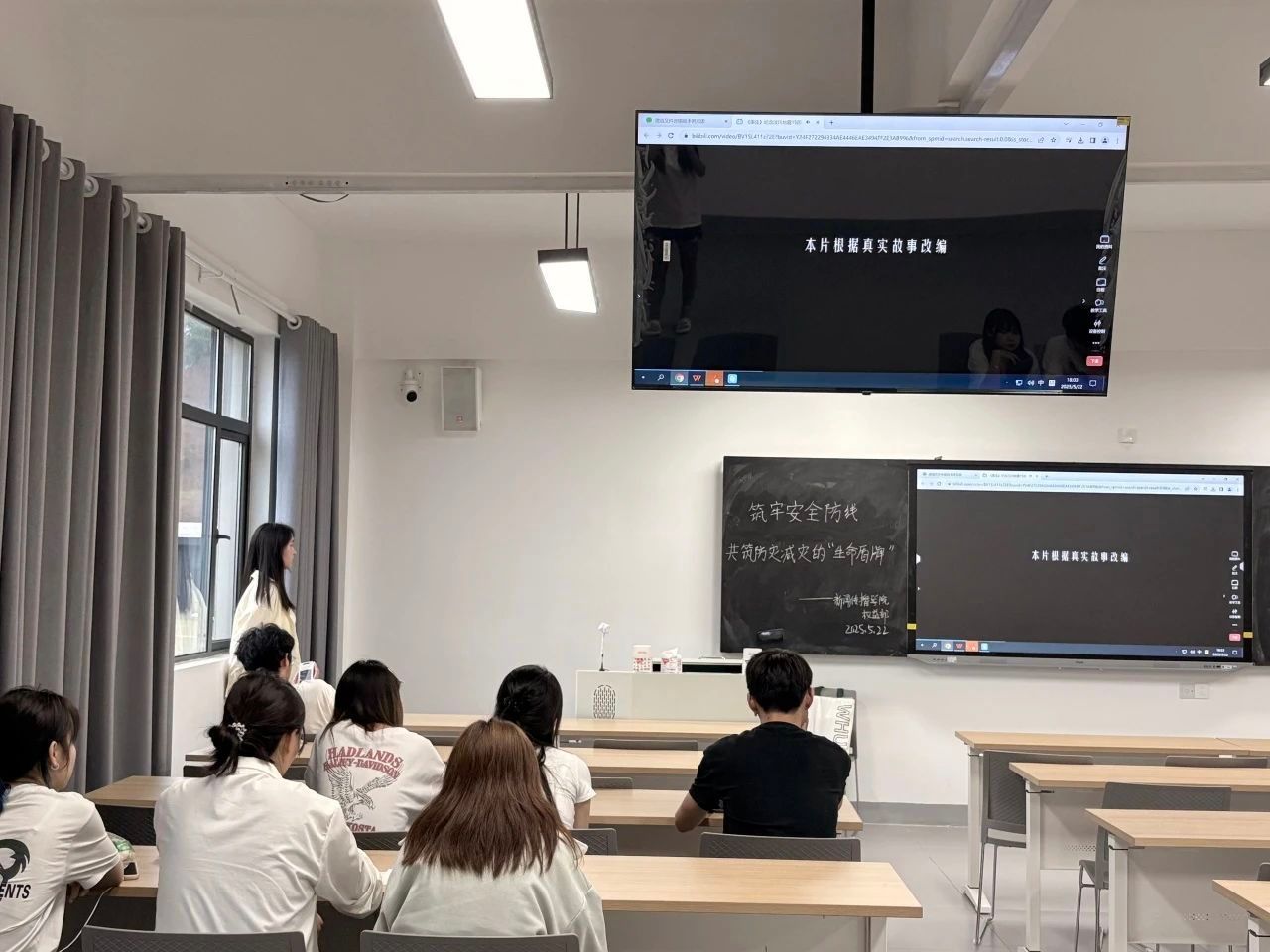 全体同学共同观看汶川大地震防灾纪录片《重生》。影片以真实影像还原地震场景,展现灾难中的生命救援与重建历程,为筑牢安全防线做思想动员。