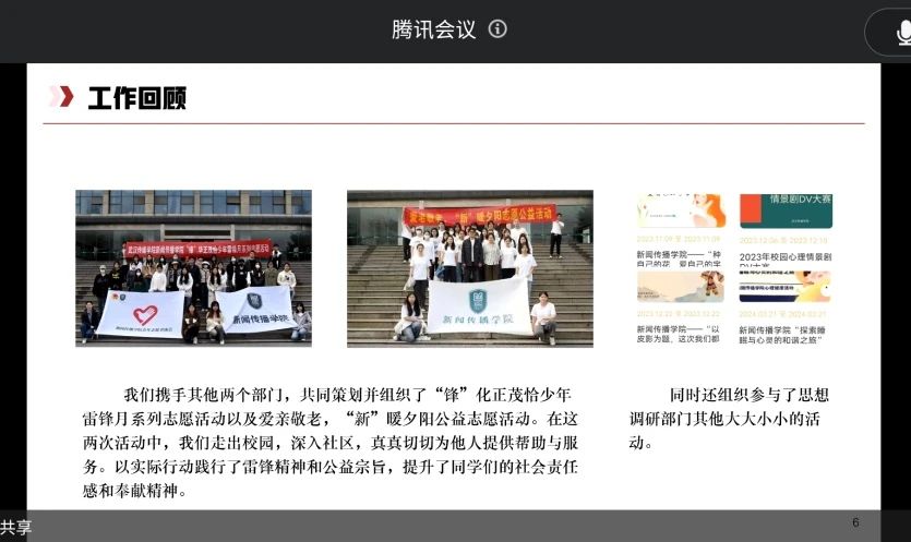数据 B2201班胡翔,现任学习部部长。他说:希望继续为学生和老师们搭建一个自由、开放的交流平台,更好地为老师和同学们服务。学习部今年已举办寒假打卡系列活动、朋辈互助工作坊新生季等活动,与大学生党员服务站及其他部门联合明熙小学开展了骄阳计划“共上一堂课,强国有你我”党建活动。目前正在策划读书月系列活动。