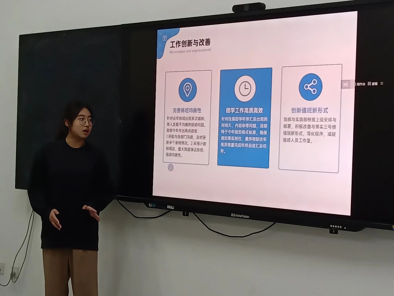 本次评选分为团支书现场汇报和学年工作考核两个部分。评选现场,各班团支部围绕班团一体化建设、三会两制一课制度落实、团员管理、活动开展、作用发挥等方面进行展示,在总结过去一年工作开展情况的同时,也明确了下一步工作的方向。