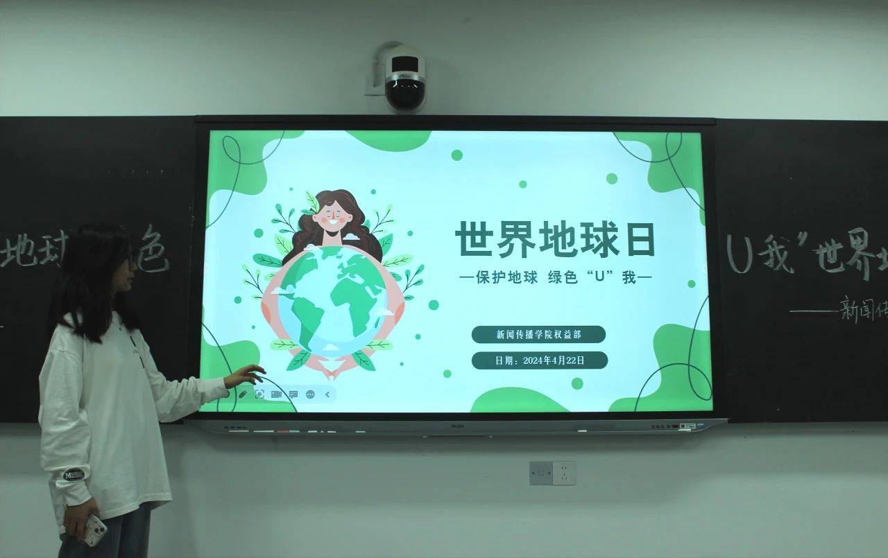 随后,现场播放了环境保护的宣传视频,让同学们直观了解到地球面临的严峻环境问题和保护环境的紧迫性。