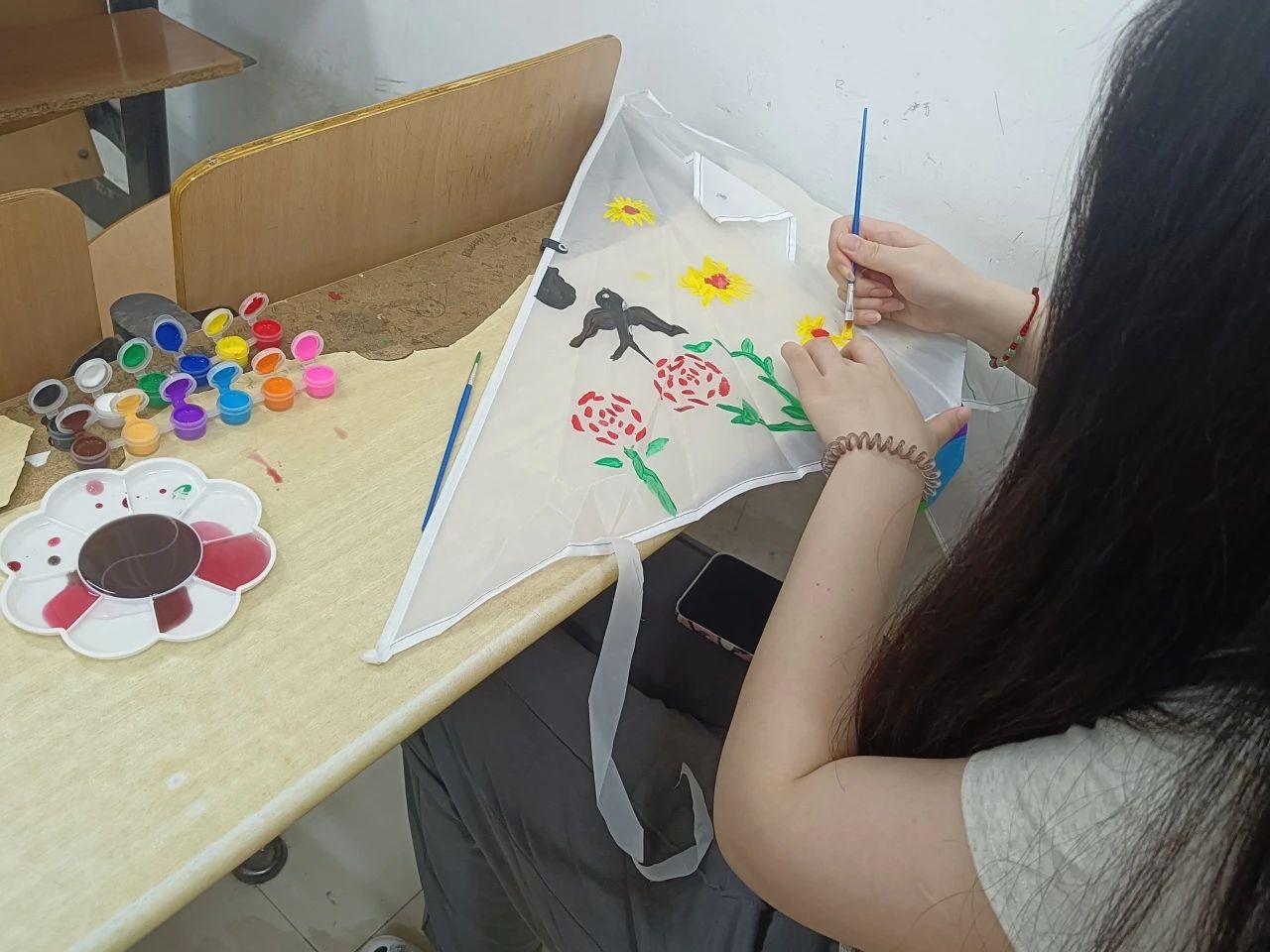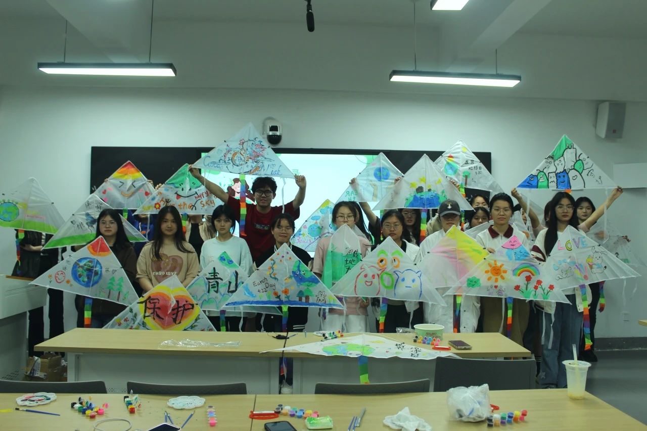 紧接着,纸鸢绘画环节拉开帷幕。同学们纷纷拿起画笔,绘出心中理想的地球模样。一幅幅色彩斑斓、充满想象力的画作在画布上逐渐呈现,既展现了同学们的艺术创作能力,也传递了他们对美好家园的向往和期待。