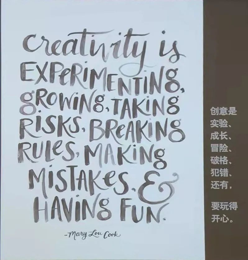 创意是什么?余子筠老师又问了一次同学们,“我们不仅仅要有实践、成长、冒险、破格与犯错,我们也要玩的开心”。