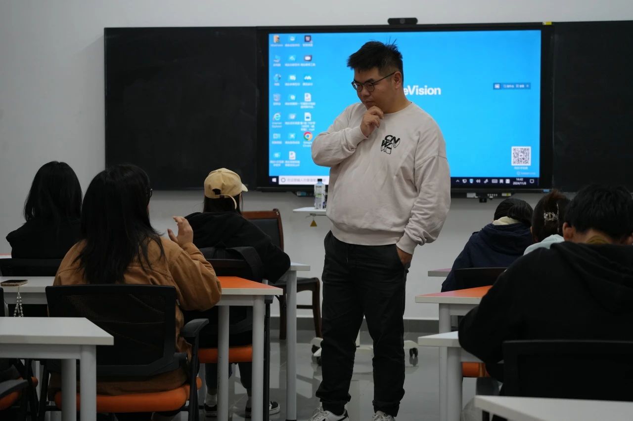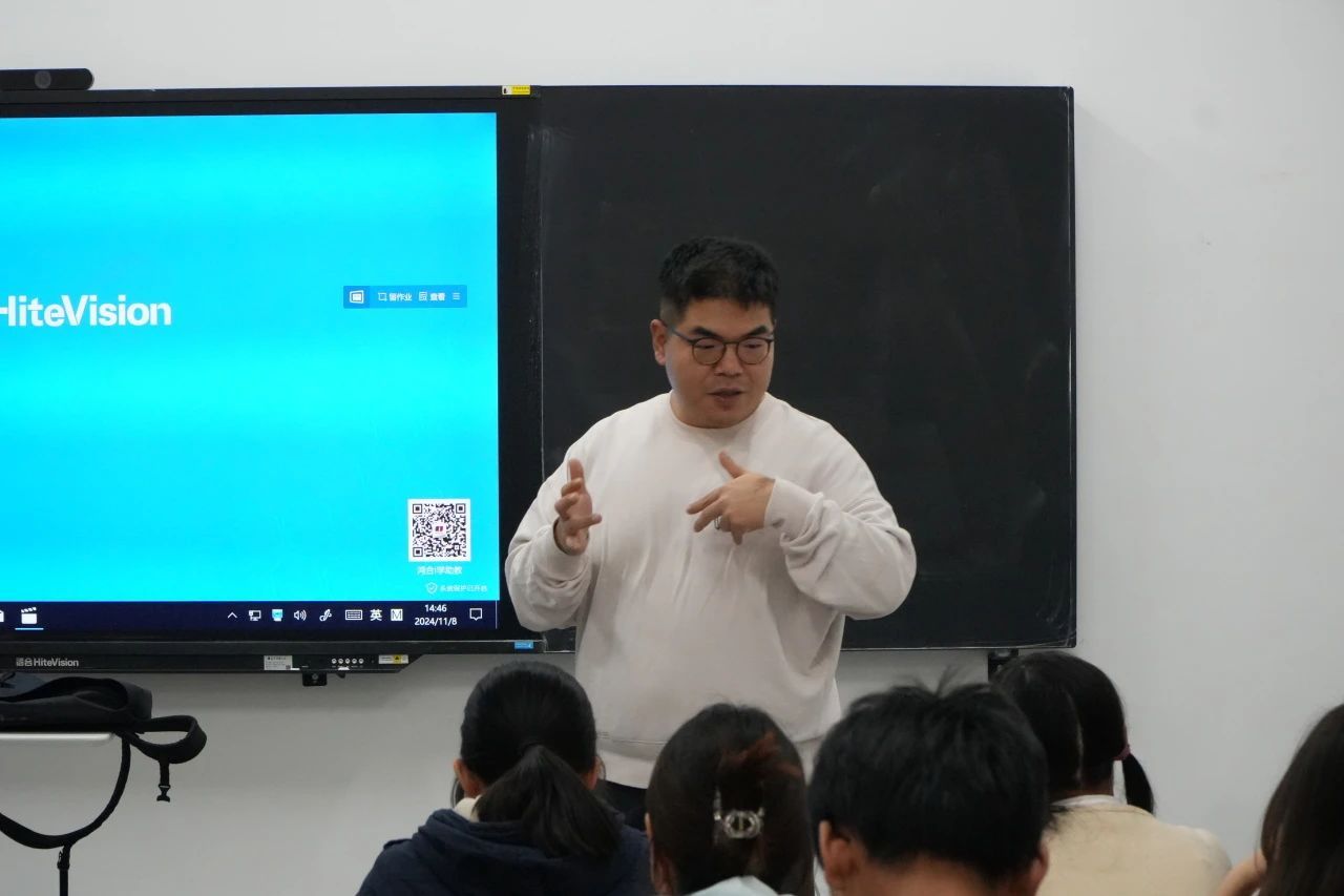在放完短片之后,夏爽老师以“非遗”主题为引子,让同学们思考如何进行视频选材,然后认真解答,并以同学们的回答为例,讲解了纪录短片制作的具体步骤及现实意义。