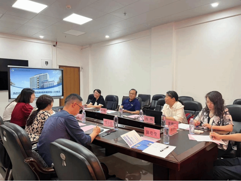 与深圳大学的交流会上,主要讨论本科人才培养、学科建设发展两大议题,会上,首先由深圳大学传播学院副院长黄玉波介绍传播学院的人才培养概况,重点强调实践教学的重要性,并以《亲爱的红军》为例,生动讲述把思政与实践进行有机结合。随后,深大网络与新媒体系主任曹博林就学生毕业创作方面予以介绍:网新专业毕设以“科技与人文相结合”为立足点,鼓励学生灵活多样选题。