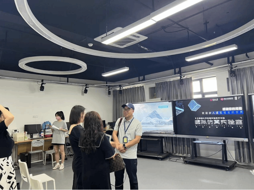 最后考察团参观了深圳大学传媒实验教学中心,实验室主要分为数字摄影影像实验室、影音节目制作实验室两大类,主要用于支持日常教学。另外还配备虚拟仿真实验教学平台,在当下时兴的VR/AR/数字等前沿领域展开探索和实践。